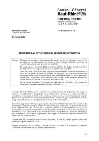 EXECUTION PAR ANTICIPATION DU BUDGET DEPARTEMENTAL