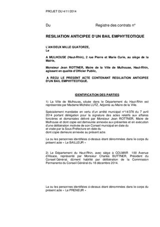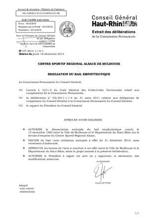 CENTRE SPORTIF REGIONAL ALSACE DE MULHOUSE RESILIATION DU BAIL EMPHYTEOTIQUE