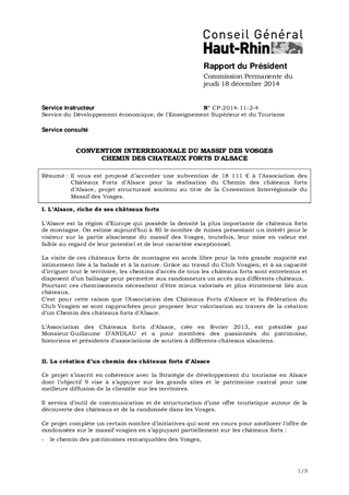 CONVENTION INTERREGIONALE DU MASSIF DES VOSGES CHEMIN DES CHATEAUX FORTS D'ALSACE