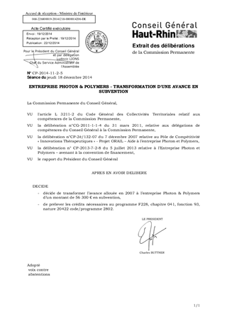 ENTREPRISE PHOTON & POLYMERS - TRANSFORMATION D'UNE AVANCE EN SUBVENTION