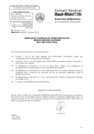 GERPLAN ET CONTRATS DE TERRITOIRE DE VIE MISE EN OEUVRE D'ACTIONS K811 K812 K813 K815
