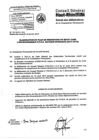 Le présent rapport a pour objet de présenter l’élaboration du Plan de Prévention du Bruit dans l'Environnement (P.P.B.E.) de première et seconde échéance, relatif aux routes départementales dont le trafic journalier est supérieur à 8 200 véhicules/j avec l'assistance d'un prestataire de services. L’objectif du Plan de Prévention du Bruit dans l’Environnement est de prévenir les effets du bruit, de diminuer si nécessaire, l’exposition des habitants aux nuisances sonores et de protéger les zones calmes. Il s’agit de limiter l’exposition sonore sur les bâtiments d’habitation, d’enseignement et de santé les plus exposés. Le PPBE de première échéance (routes de plus de 16 400 véhicules/j) provisoire a été présenté sous forme d’une Communication en Commission Permanente le 30 novembre 2012. Il s'agira à partir des Cartes du Bruit publiées par l’Etat, déterminant les zones concernées, de réaliser un PPBE de seconde échéance pour les routes de plus de 8 200 véhicules/j sur la base d’un diagnostic acoustique. Il devra comprendre des propositions d’actions de résorption chiffrées. Il sera soumis à consultation publique ainsi que le PPBE première échéance. Le budget de l'étude est estimé à 120 000€ TTC. Il est proposé de: -Valider l'élaboration du Plan de Prévention du Bruit dans l'Environnement de seconde échéance au titre du programme A112 " Etudes sur routes départementales", -Approuver les objectifs et les prochaines étapes du P.P.B.E. de première et seconde échéance, -Affecter la dépense prévisionnelle de 120 000€ TTC sur le programme A112 "Etudes sur routes départementales".
