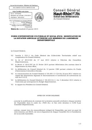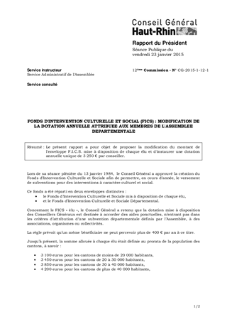 FONDS D'INTERVENTION CULTURELLE ET SOCIAL (FICS) : MODIFICATION DE LA DOTATION ANNUELLE ATTRIBUEE AUX MEMBRES DE L'ASSEMBLEE DEPARTEMENTALE