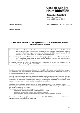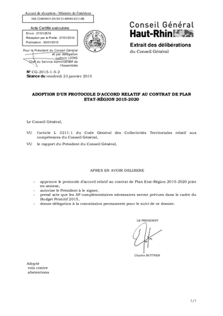 ADOPTION D'UN PROTOCOLE D'ACCORD RELATIF AU CONTRAT DE PLAN ETAT-RÉGION 2015-2020