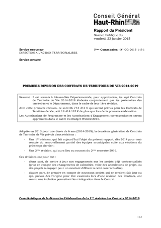 PREMIERE REVISION DES CONTRATS DE TERRITOIRE DE VIE 2014-2019
