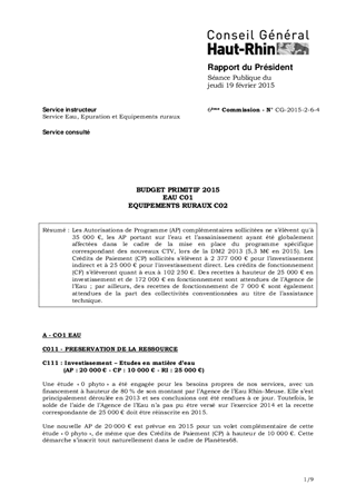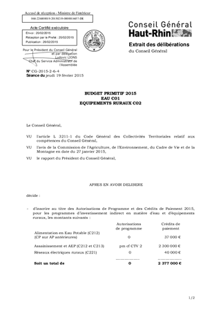 BUDGET PRIMITIF 2015 EAU C01 EQUIPEMENTS RURAUX C02