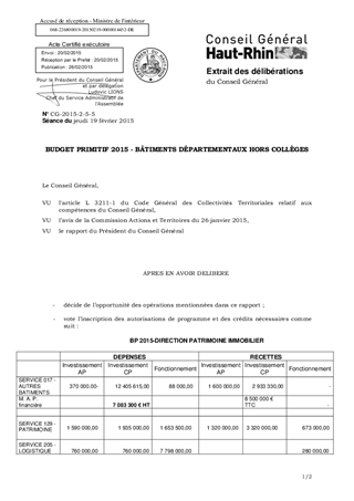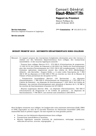 BUDGET PRIMITIF 2015 - BÂTIMENTS DÉPARTEMENTAUX HORS COLLÈGES