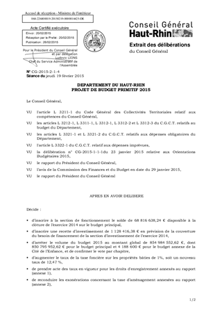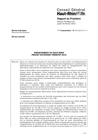 DEPARTEMENT DU HAUT-RHIN PROJET DE BUDGET PRIMITIF 2015