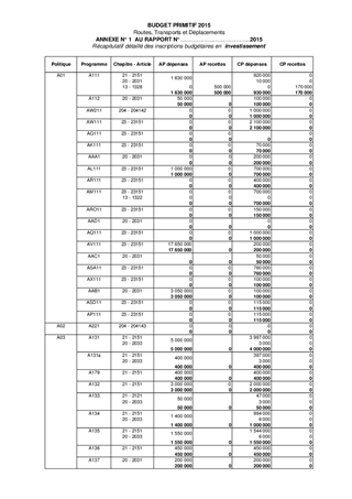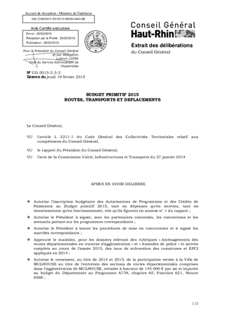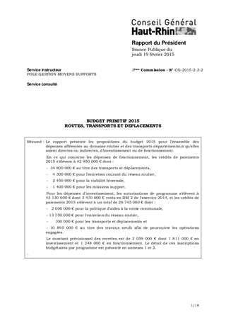 BUDGET PRIMITIF 2015 ROUTES, TRANSPORTS ET DEPLACEMENTS