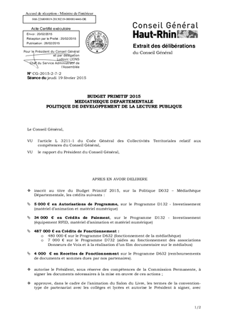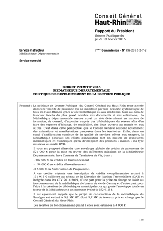 BUDGET PRIMITIF 2015 MEDIATHEQUE DEPARTEMENTALE POLITIQUE DE DEVELOPPEMENT DE LA LECTURE PUBLIQUE