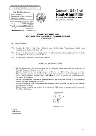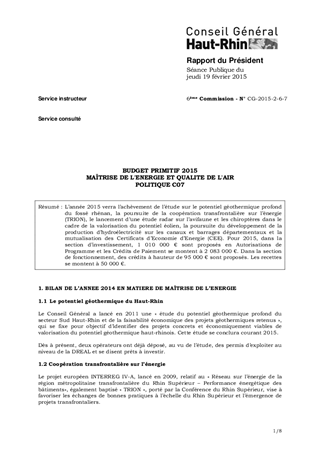 BUDGET PRIMITIF 2015 MAÎTRISE DE L'ENERGIE ET QUALITE DE L'AIR POLITIQUE C07 BUDGET PRIMITIF 2015