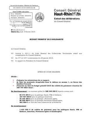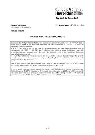 BUDGET PRIMITIF 2015 SOLIDARITE