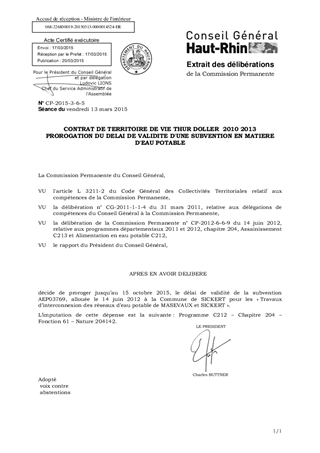 CONTRAT DE TERRITOIRE DE VIE THUR DOLLER 2010 2013 PROROGATION DU DELAI DE VALIDITE D'UNE SUBVENTION EN MATIERE D'EAU POTABLE