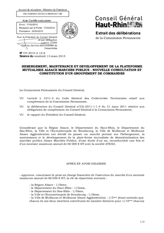 HEBERGEMENT, MAINTENANCE ET DEVELOPPEMENT DE LA PLATEFORME MUTUALISEE ALSACE MARCHES PUBLICS - NOUVELLE CONSULTATION ET CONSTITUTION D'UN GROUPEMENT DE COMMANDES