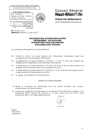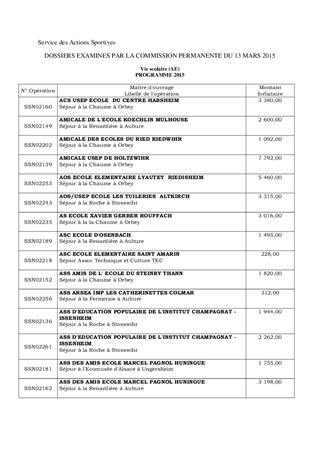 POLITIQUE DES ACTIONS EDUCATIVES PROGRAMME : VIE SCOLAIRE SUBVENTIONS POUR LES SORTIES SCOLAIRES AVEC NUITEES