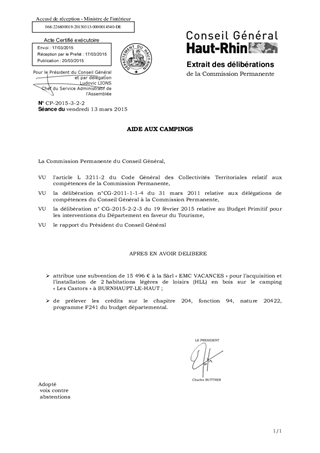 Il est proposé d'attribuer une subvention de 15 496 € à la Sàrl EMC VACANCES pour l'acquisition et l'installation de 2 habitations légères de loisirs (HLL) en bois sur le camping "Les Castors" à BURNHAUPT-LE-HAUT