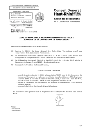 AIDE À L'ASSOCIATION FRANCO-GERMANO-SUISSE TRION : ADOPTION DE LA CONVENTION DE FINANCEMENT