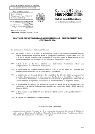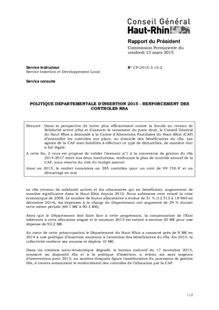 POLITIQUE DEPARTEMENTALE D'INSERTION 2015 - RENFORCEMENT DES CONTROLES RSA
