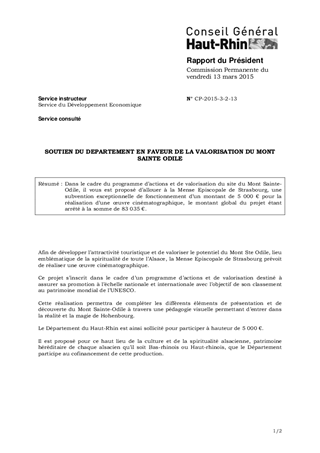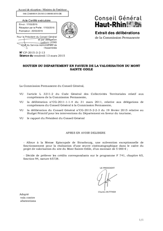 SOUTIEN DU DEPARTEMENT EN FAVEUR DE LA VALORISATION DU MONT SAINTE ODILE