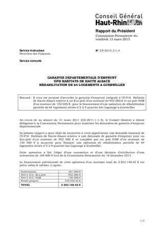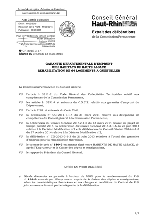 GARANTIE DEPARTEMENTALE D'EMPRUNT OPH HABITATS DE HAUTE ALSACE REHABILITATION DE 64 LOGEMENTS A GUEBWILLER