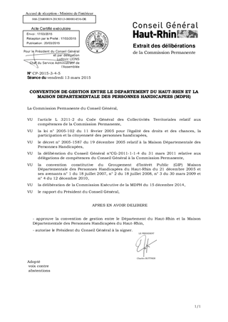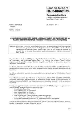 CONVENTION DE GESTION ENTRE LE DEPARTEMENT DU HAUT-RHIN ET LA MAISON DEPARTEMENTALE DES PERSONNES HANDICAPEES (MDPH)