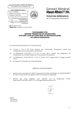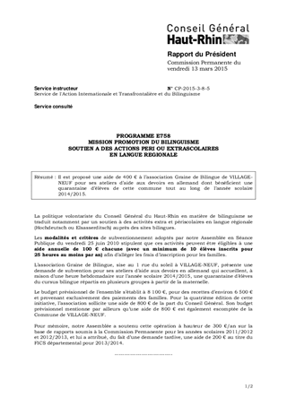 PROGRAMME E758 MISSION PROMOTION DU BILINGUISME SOUTIEN A DES ACTIONS PERI OU EXTRASCOLAIRES EN LANGUE REGIONALE