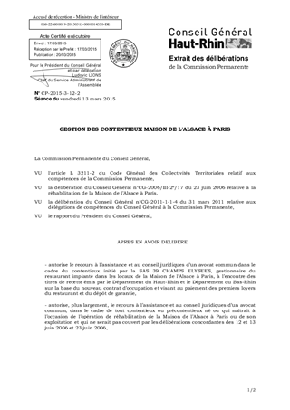 GESTION DES CONTENTIEUX MAISON DE L'ALSACE À PARIS