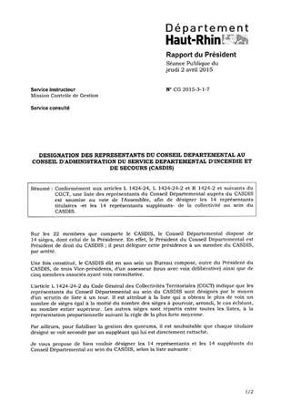 Conformément aux articles L 1424-24, L 1424-24-2 et R 1424-2 et suivants du CGCT, une liste des représentants du Conseil Départemental auprès du CASDIS est soumise au vote de l'Assemblée, afin de désigner les 14 représentants titulaires -et les 14 représentants suppléants- de la collectivité au sein du CASDIS.