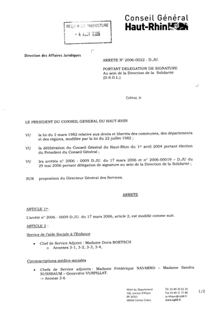 portant délégation de signature au sein de la Direction de la Solidarité Resumé Pièces jointes ARRETE Assemblée : Non défini Date : 03/08/2006 Rapporteur : Non défini Collectivité : Conseil départemental du Haut-Rhin Direction : Non défini Service : Service Juridique Domaine : Organisation Interne Commission :