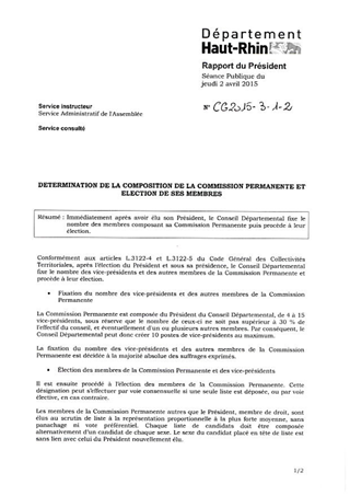Immédiatement après avoir élu son Président, le Conseil Départemental fixe le nombre des membres composant sa Commission Permanente puis procède à leur élection.