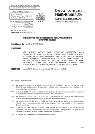 INDEMNITÉS DES CONSEILLERS DÉPARTEMENTAUX ET FRAIS DIVERS
