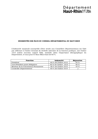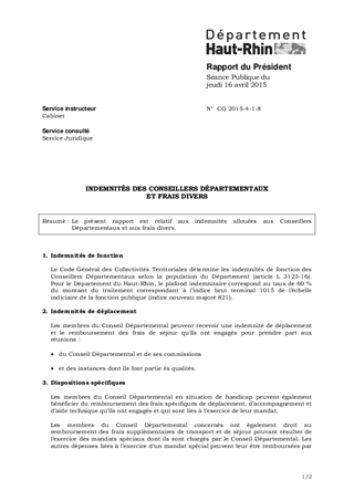 Le présent rapport est relatif aux indemnités allouées aux Conseillers Départementaux et aux frais divers.