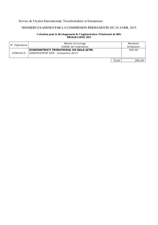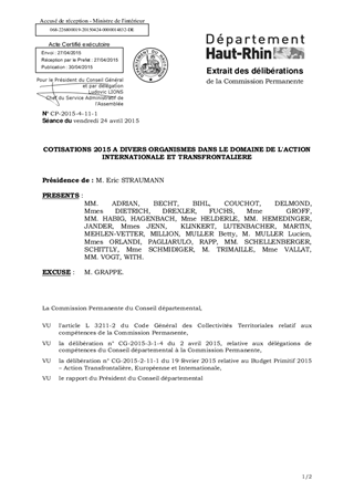 COTISATIONS 2015 A DIVERS ORGANISMES DANS LE DOMAINE DE L'ACTION INTERNATIONALE ET TRANSFRONTALIERE