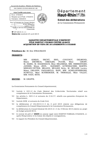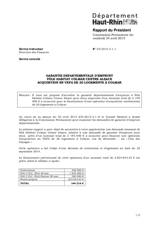 GARANTIE DEPARTEMENTALE D'EMPRUNT PÔLE HABITAT COLMAR CENTRE ALSACE ACQUISITION EN VEFA DE 20 LOGEMENTS À COLMAR
