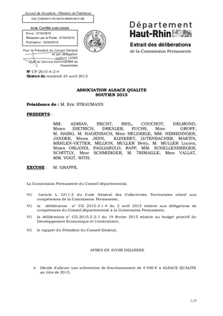 ASSOCIATION ALSACE QUALITE SOUTIEN 2015