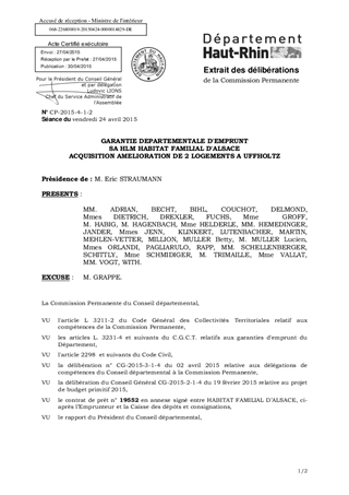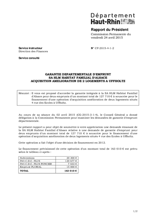 GARANTIE DEPARTEMENTALE D'EMPRUNT SA HLM HABITAT FAMILIAL D'ALSACE ACQUISITION AMELIORATION DE 2 LOGEMENTS A UFFHOLTZ