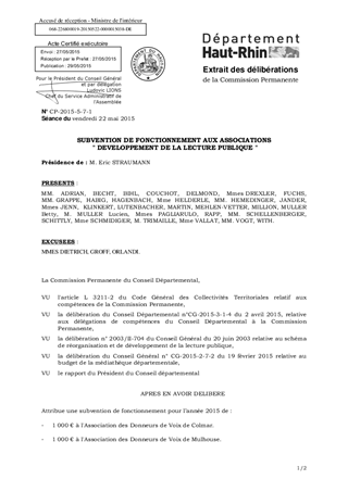 SUBVENTION DE FONCTIONNEMENT AUX ASSOCIATIONS " DEVELOPPEMENT DE LA LECTURE PUBLIQUE "