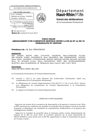 VIEUX-THANN AMENAGEMENT D'UN CARREFOUR DENIVELE ENTRE LA RN 66 ET LA RD 33 DOMANIALITE ET GESTION