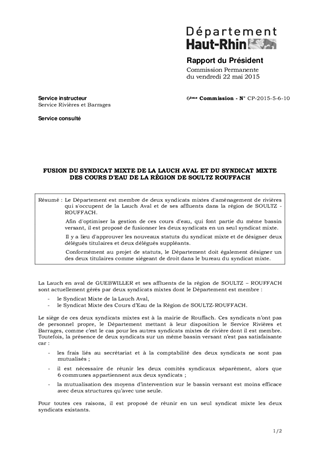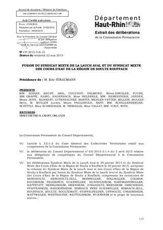 FUSION DU SYNDICAT MIXTE DE LA LAUCH AVAL ET DU SYNDICAT MIXTE DES COURS D'EAU DE LA RÉGION DE SOULTZ ROUFFACH
