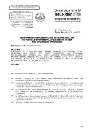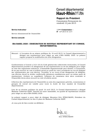 A l'occasion de sa séance publique du 16 avril 2015, le Conseil départemental a désigné son représentant pour siéger au sein d'IBA BASEL 2020. Le présent rapport propose la modification de cette désignation.