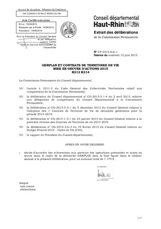 GERPLAN ET CONTRATS DE TERRITOIRE DE VIE MISE EN OEUVRE D'ACTIONS 2015 K212 K214