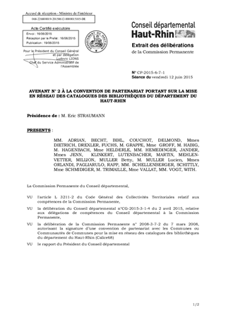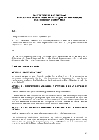AVENANT N° 2 À LA CONVENTION DE PARTENARIAT PORTANT SUR LA MISE EN RÉSEAU DES CATALOGUES DES BIBLIOTHÈQUES DU DÉPARTEMENT DU HAUT-RHIN
