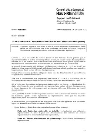 ACTUALISATION DU REGLEMENT DEPARTEMENTAL D'AIDE SOCIALE (RDAS)