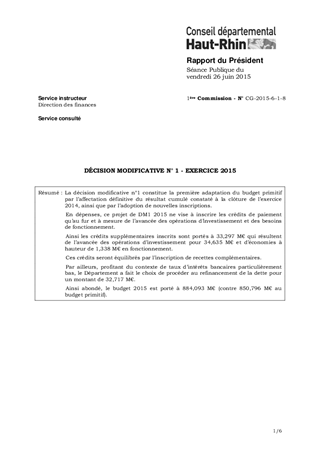 DÉCISION MODIFICATIVE N° 1 - EXERCICE 2015