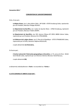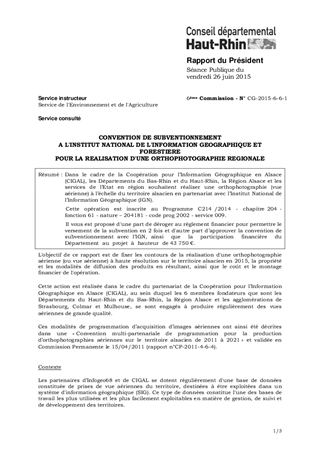 CONVENTION DE SUBVENTIONNEMENT A L'INSTITUT NATIONAL DE L'INFORMATION GEOGRAPHIQUE ET FORESTIERE POUR LA REALISATION D'UNE ORTHOPHOTOGRAPHIE REGIONALE