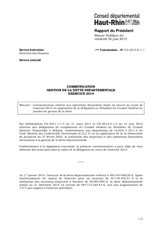 COMMUNICATIONGESTION DE LA DETTE DEPARTEMENTALEEXERCICE 2014