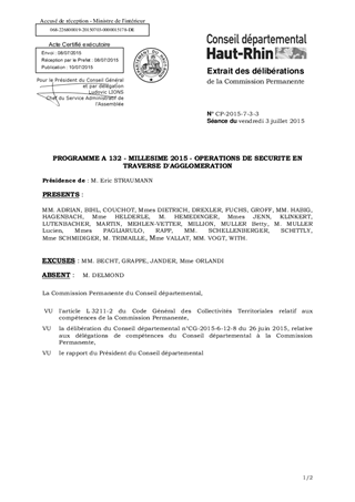 PROGRAMME A 132 - MILLESIME 2015 - OPERATIONS DE SECURITE EN TRAVERSE D'AGGLOMERATION