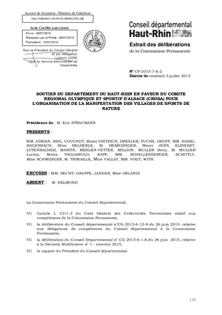SOUTIEN DU DEPARTEMENT DU HAUT-RHIN EN FAVEUR DU COMITE REGIONAL OLYMPIQUE ET SPORTIF D'ALSACE (CROSA) POUR L'ORGANISATION DE LA MANIFESTATION DES VILLAGES DE SPORTS DE NATURE