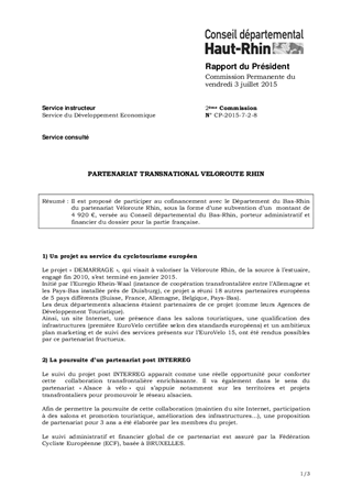 PARTENARIAT TRANSNATIONAL VELOROUTE RHIN