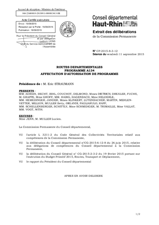 ROUTES DEPARTEMENTALES PROGRAMME A134 AFFECTATION D'AUTORISATION DE PROGRAMME